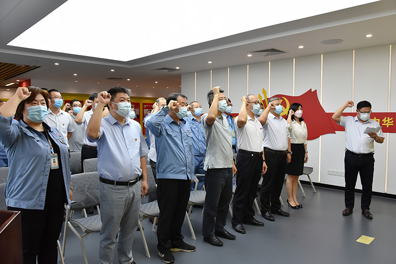 隨后,全體黨員干部在鮮紅的黨旗下,高舉右手,莊嚴宣誓,以鏗鏘有力入黨誓詞喚醒作為共產黨員的使命與責任,提醒黨員干部時刻牢記初心使命、永葆清廉本色。