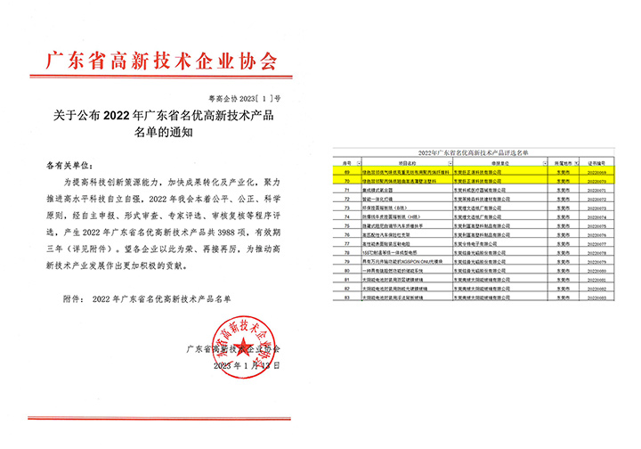 近日,廣東省高新技術(shù)企業(yè)協(xié)會公布了2022年廣東省名優(yōu)高新技術(shù)產(chǎn)品名單。東莞巨正源科技有限公司的“綠色非鄰低氣味低克重無紡布用聚丙烯纖維料”、“綠色非鄰聚丙烯低翹曲高透薄壁注塑料”兩項產(chǎn)品榮獲“廣東省名優(yōu)高新技術(shù)產(chǎn)品”稱號。