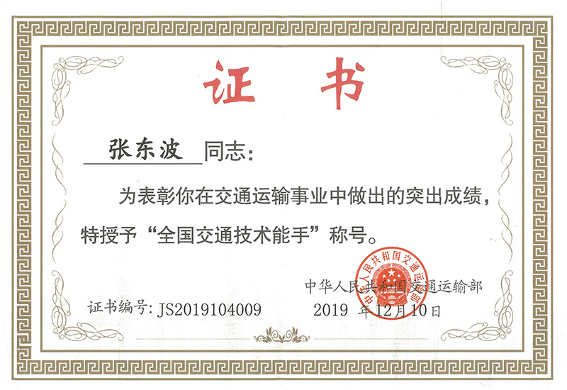 2019年,張東波同志通過層層選拔,成為廣東省交通運輸廳代表隊一員,參加由交通運輸部、人力資源社會保障部、中華全國總工會、共青團中央共同主辦的第十一屆全國交通運輸行業“天津港杯”流體裝卸操作工職業技能大賽全國總決賽,為廣東省榮獲團體第六名立下汗馬功勞。張東波還榮獲個人成績第十一名的佳績,在全國大賽的舞臺上充分展示了巨正源人過硬的技術本領和奮力拼搏的良好作風。
