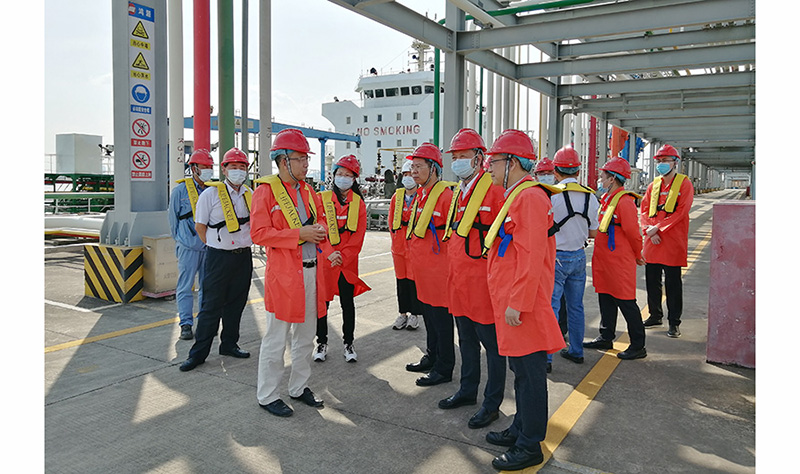 駱貴全一行先后參觀了巨正源公司旗下的盛源油庫、鴻源碼頭、聚丙烯項目一期生產現場和二期建設現場,詳細了解油庫和碼頭的運作情況、聚丙烯項目一期生產運營和二期工程建設情況。