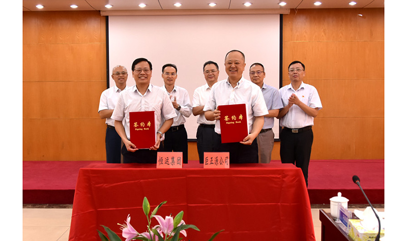 巨正源副總裁黃鐵民與恒運集團副總經理周水良代表企業簽訂戰略合作意向書