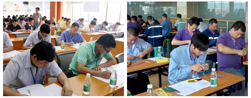 此次勞動競賽內(nèi)容分理論知識和操作技能兩部分,其中理論知識部分采用閉卷筆試方式進行,操作技能部分采用現(xiàn)場操作方式進行。賽前,盛源石化公司的參賽員工積極備戰(zhàn),在訓(xùn)練中復(fù)習(xí)并提高電工理論與操作技能。比賽中,參賽員工沉著應(yīng)對,操作規(guī)范,以扎實的理論知識和精湛的操作技能,在限定的時間內(nèi)完成比賽要求。