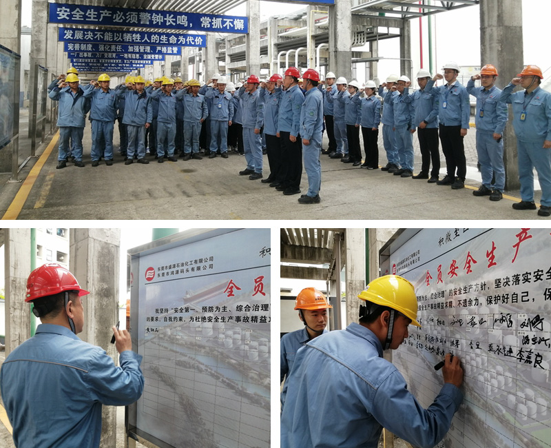 活動中,盛源石化、鴻源碼頭公司在現場開展企業主體責任落實專題培訓。隨后,黃鐵民帶領全體員工進行安全生產主體責任承諾宣誓,并在安全承諾展板上簽名。